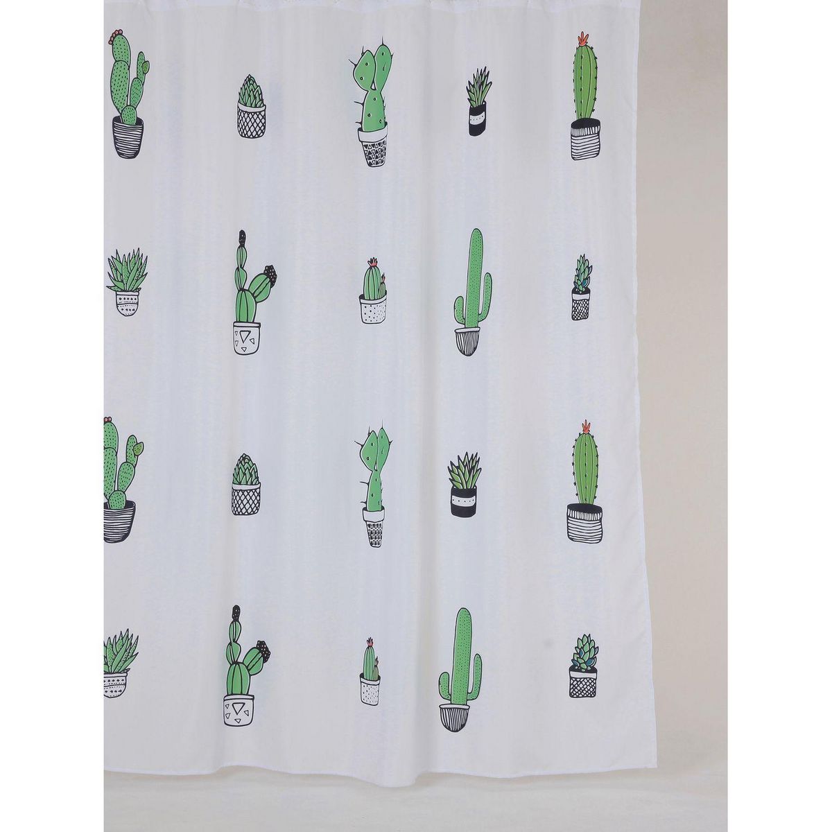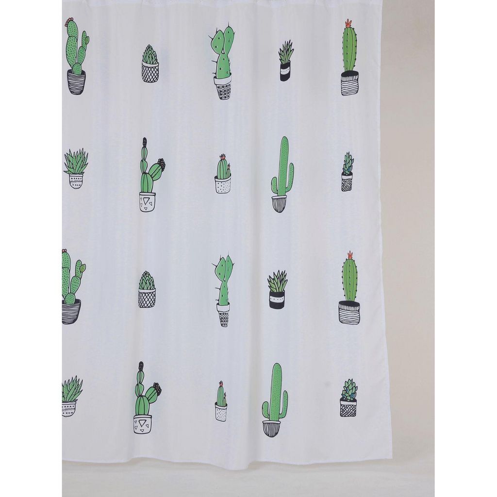 Rideau de douche tropical CACTUS - 180 x 200 cm - Blanc