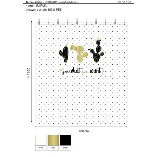 Rideau de douche tropical CACTUSA - 180 x 200 cm - Blanc