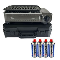 Barbecue à gaz Portable Grill 1780W + 4 Cartouches Gaz Butane Allumage Piezo + Mallette Camping ALPEN