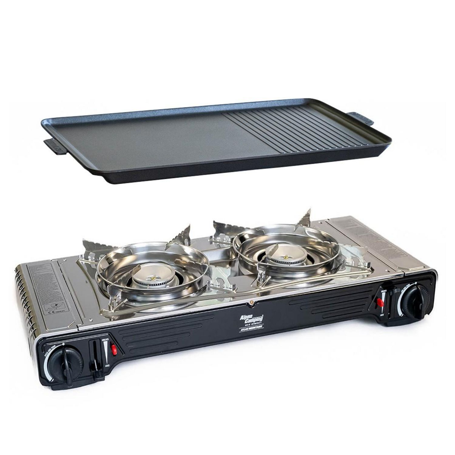 Réchaud 2 feux Inox 4400W + Plaque Grill Plancha 2en1 Thermocouple Intérieur / Extérieur ALPEN CAMPING