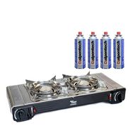 Réchaud à gaz 2 feux 4400W Thermocouple intégré + 4 cartouches de gaz 250gr ALPEN Camping