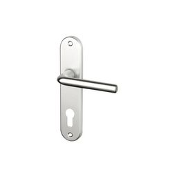 Intérieure sur plaque finition argent, plaque perçage cylindre. Matière : aluminium. Entraxe fixation 165mm. Hauteur plaque (mm) : 185 Largeur plaque (mm): 39. Accessoires fournis : 2 vis relieuses + 1 carré.