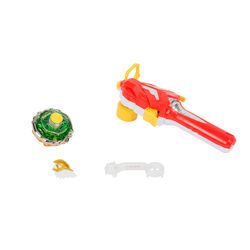 1 toupie avec anneau d'attaque en métal et tous ses accessoires, un lanceur magnétique exclusif et un outil d'assemblage