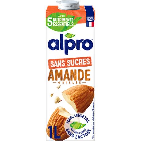 Alpro Lait d'Amande Grillée Sans Sucres est une alternative végétale au lait, sans lactose. Cette délicieuse boisson végétale à base d'amandes méditerranéennes grillées est sans sucres, faible en calories, sans colorants, ni conservateurs ! Naturellement faible en matières grasses, ce lait d'amande sans sucres constitue une source de calcium et de vitamine D, B2, B12 et E. Le lait d'amande sans sucres Alpro est à déguster seul, avec vos céréales au petit-déjeuner ou comme ingrédient dans vos recettes sucrées ou salées.
