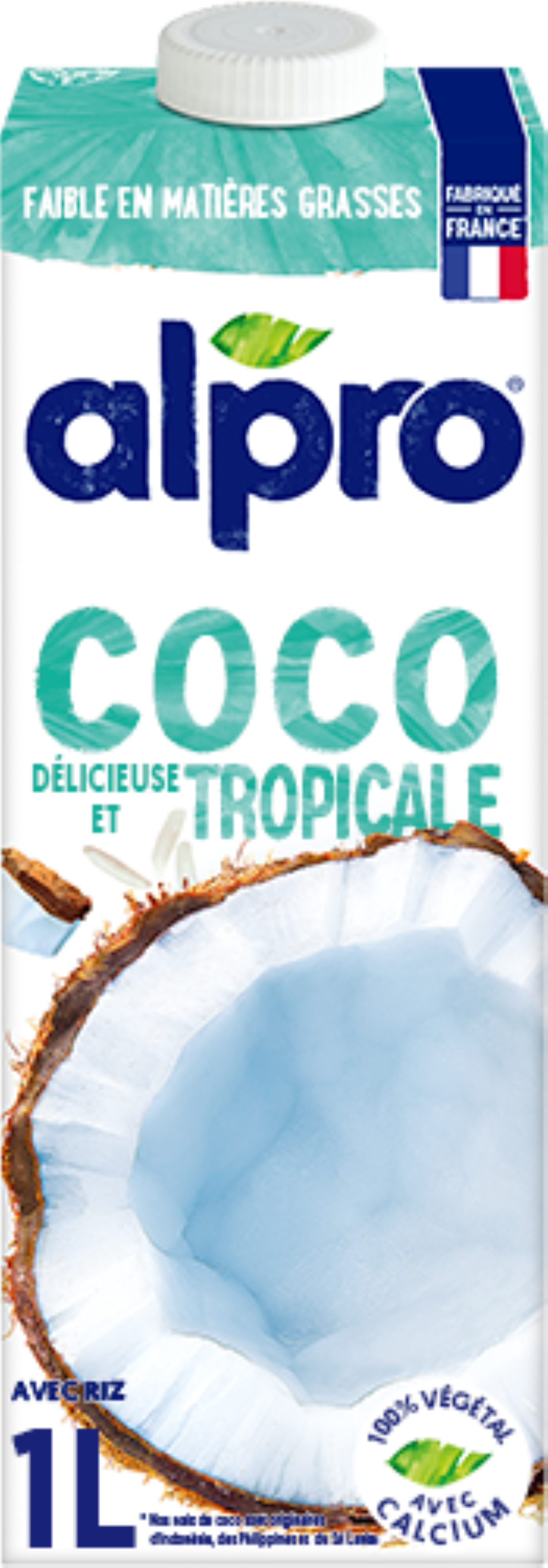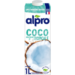 Alpro Boisson Végétale Coco est une alternative végétale au lait, sans lactose, faible en calories, sans colorants, ni conservateurs ! Naturellement faible en matières grasses, cette boisson végétale à base de riz et de lait de coco constitue une source de calcium et de vitamine D et B12. La boisson végétale à la noix de coco Alpro est à déguster aussi bien seule que comme ingrédient pour vos recettes sucrées ou salées.