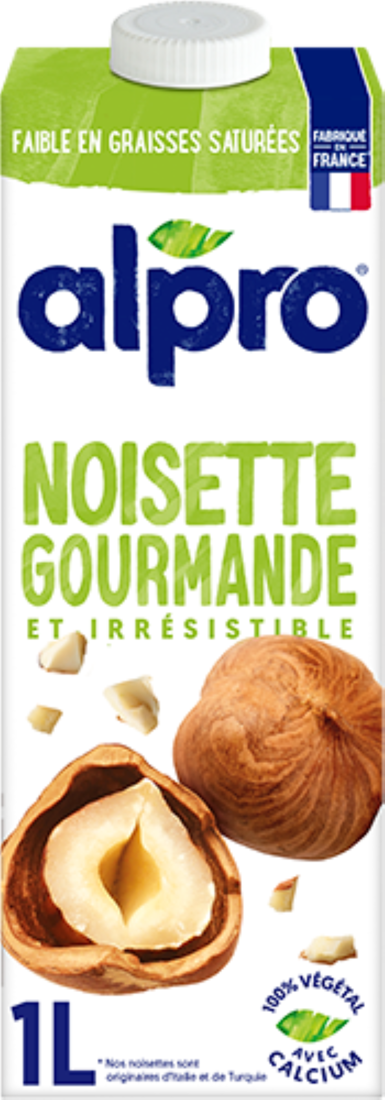 Boisson à la noisette avec calcium et vitamines ajotués.