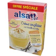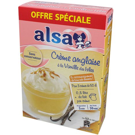 Alsa® met plein d'amour dans la confection de ses recettes et sélectionne de bonsDu sucre, de la Fleur de Maïs Maïzena® (amidon de maïs) : 7,9%, de l'amidon modifié de pomme de terre, de la graisse de palme, du jaune d'ŒUF, du sirop de glucose, des épaississants : gomme xanthane et gomme guar, des protéines de LAIT, de l'arôme naturel de vanille, de la gousse de vanille en poudre, des graines de vanille épuisées, des colorants : riboflavines et rocou et un arôme. Peut contenir : gluten.