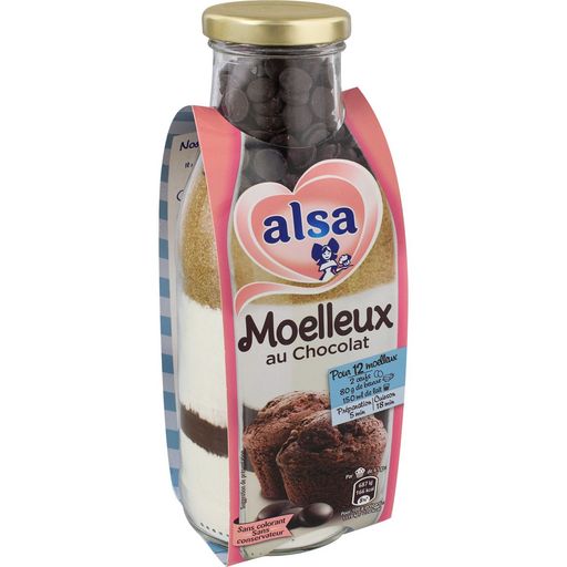 Avec Alsa®, l’amour ça se voit ! Découvrez les bouteilles en verre Alsa® et leurs savoureux ingrédients, qui vous permettront de réaliser en un rien de temps vos fondants au chocolat, muffins, cookies, financiers et moelleux au chocolat ! La saga Alsa® commence en 1896, lorsqu’un jeune Français, apprenti boulanger à Vienne, découvre l’utilisation de la levure chimique pour faire gonfler les brioches. De retour en France, il commence à fabriquer cette levure chimique dans son petit sachet rose et fonde la société Alsa®. Au cours des années, la gamme s’agrandit en proposant des préparations pour gâteaux et desserts : moelleux nature, brownie, gâteau marbré, flan entremets au bon goût caramel, fondant au chocolat, petits pots de crème à la vanille bourbon, flan pâtissier, gateau aux amandes, cake au citron, cookies, crumble, muffin et bien plus encore ! Chez Alsa®, nous voulons faire rimer la pâtisserie, le plaisir et la gourmandise et ne laisser que le meilleur à nos consommateurs : la joie et la fierté de finaliser leurs desserts. Alsa® est le partenaire idéal de vos desserts au quotidien et de vos moments festifs. Avec notre large gamme d’aides à la pâtisserie et de desserts à préparer, débutants comme confirmés peuvent créer un moment de partage et de plaisir gourmand en famille ou entre amis. Préparation pour Moelleux au Chocolat