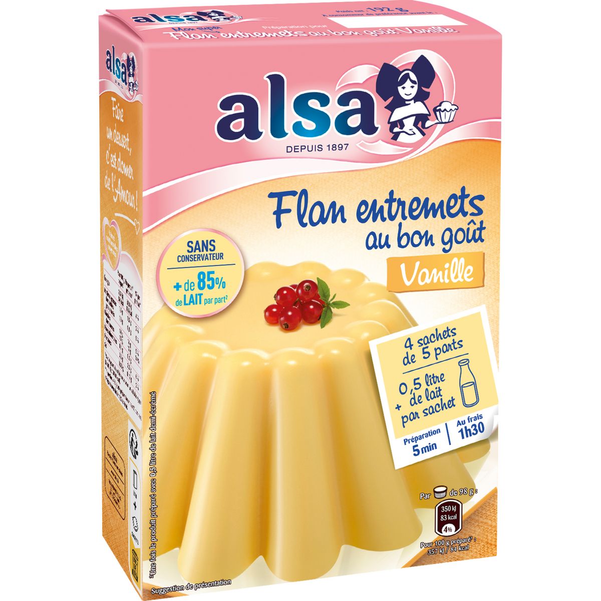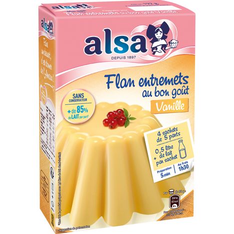 Alsa – Flan Entremets au bon goût de Vanille 192g – Préparation pour dessert facile et rapide