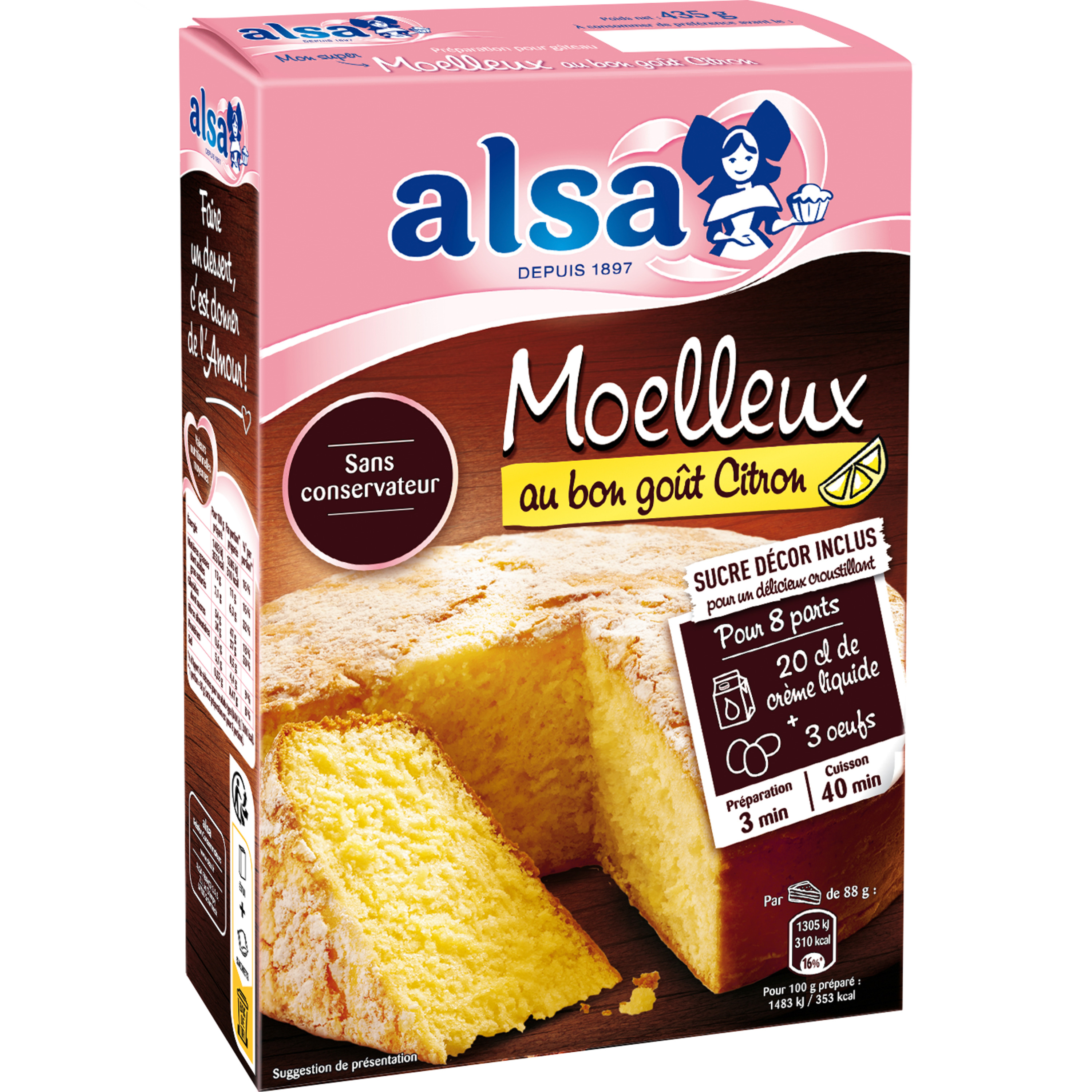 Alsa – Moelleux au Citron 435g – Préparation pour gâteau facile et rapide