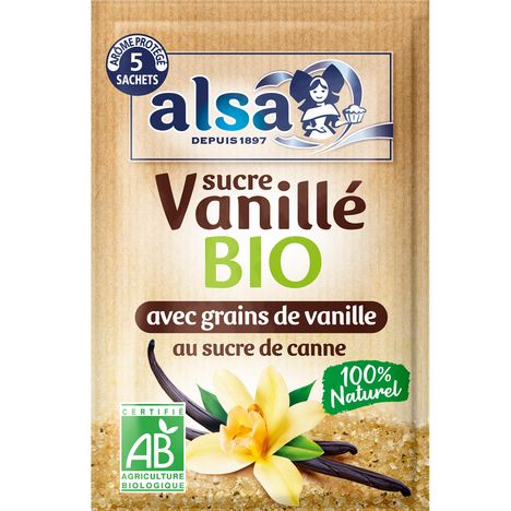 Exclusivement composé d'ingrédients d'origine biologiques, dont du sucre de canne et des grains de vanille, le Sucre Vanillé bio alsa parfumera à la perfection vos desserts.