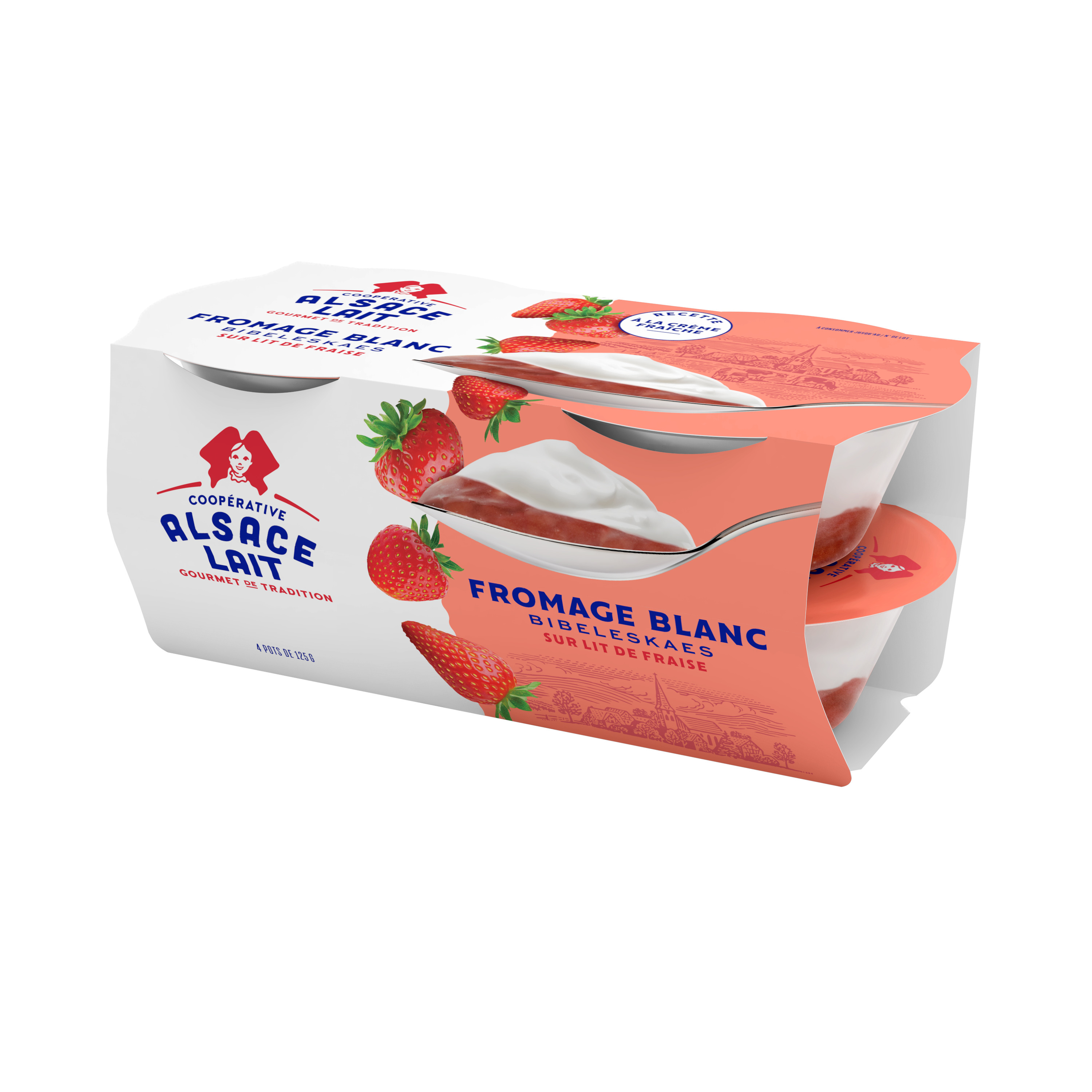 Bibeleskaes fromage blanc sur lit de fraises