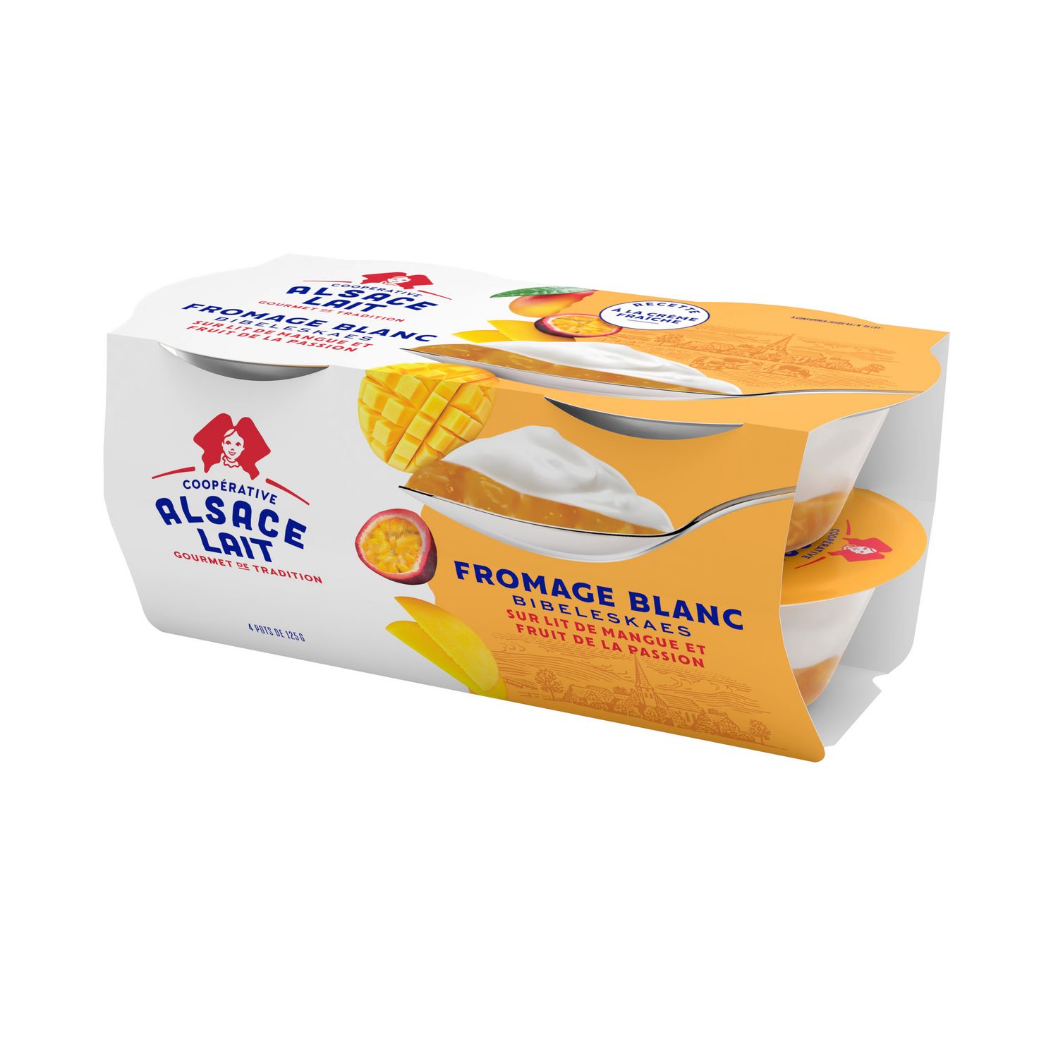 Fromage blanc sucré à la mangue et au fruit de la passion, aromatisé