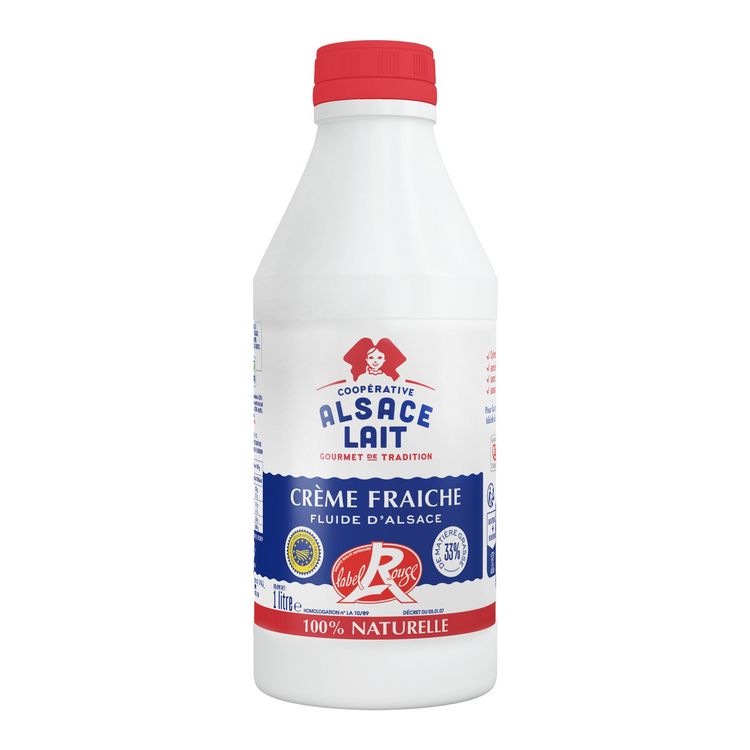 CREME* fraîche fluide pasteurisée. (*Origine : Alsace)