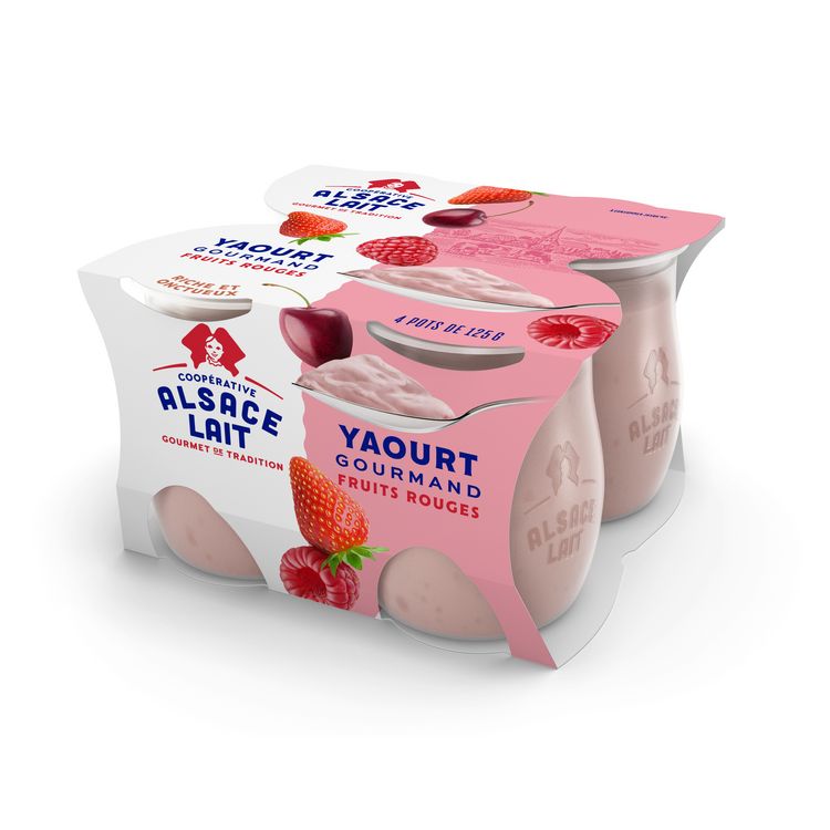 LAIT* écrémé concentré pasteurisé , CREME* pasteurisée, fruits rouges (fraises 6%, cerises griottes 2%, purée de cassis 2%) : 10%, sucre : 7%, amidon, épaississant : pectines, arômes naturels, concentré de carottes noires, ferments LACTIQUES. (*Origine : Alsace, Grand Est) Malgré tous nos soins, ce produit peut contenir des morceaux de noyaux