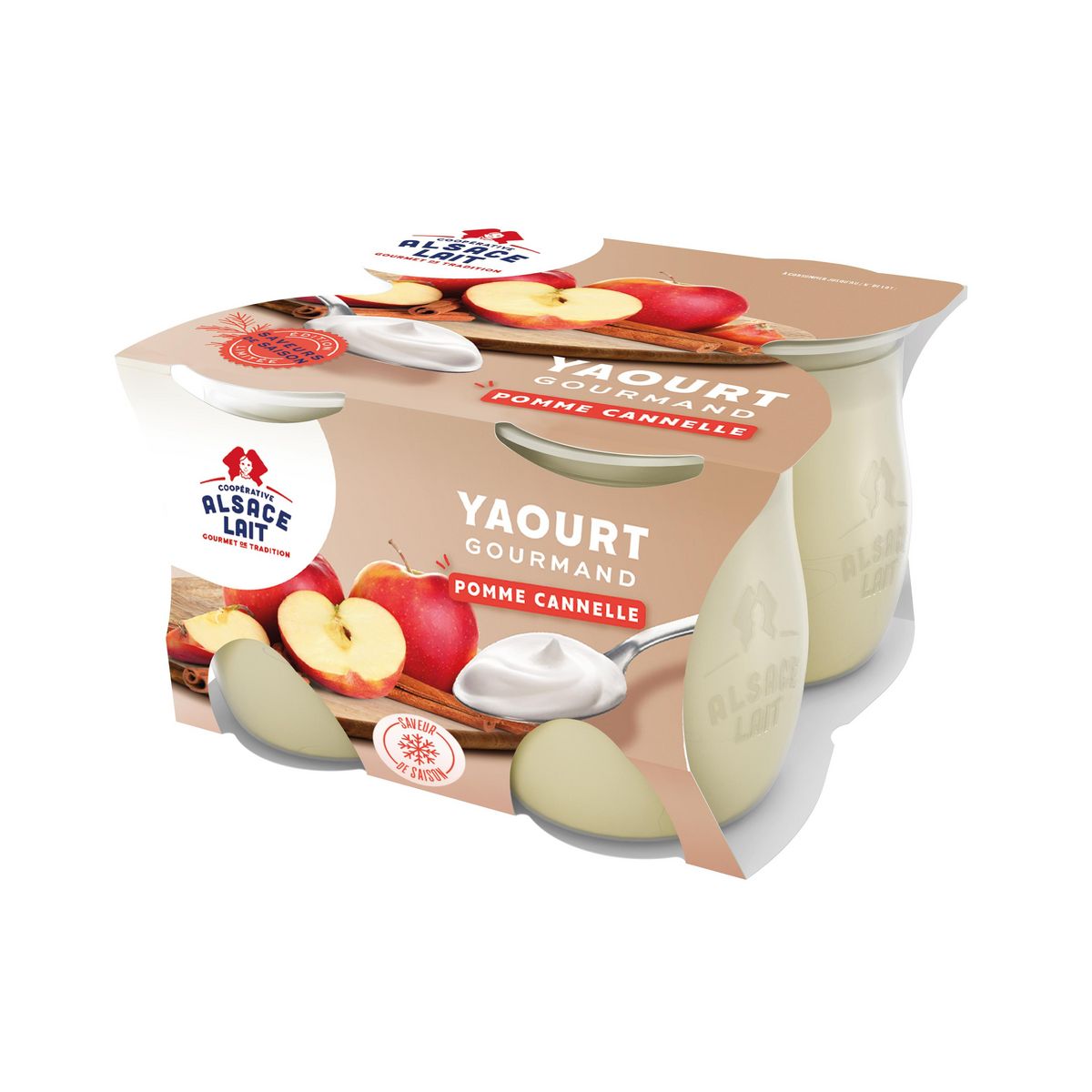 Yaourt gourmand sur lit de pomme cannelle - Edition limitée hivernale. Savourez l'esprit de l'hiver avec ce yaourt crémeux, déposé sur un lit de pommes fondantes délicatement relevées de cannelle. Une recette douce et réconfortante, parfaite pour les pauses gourmandes de saison.