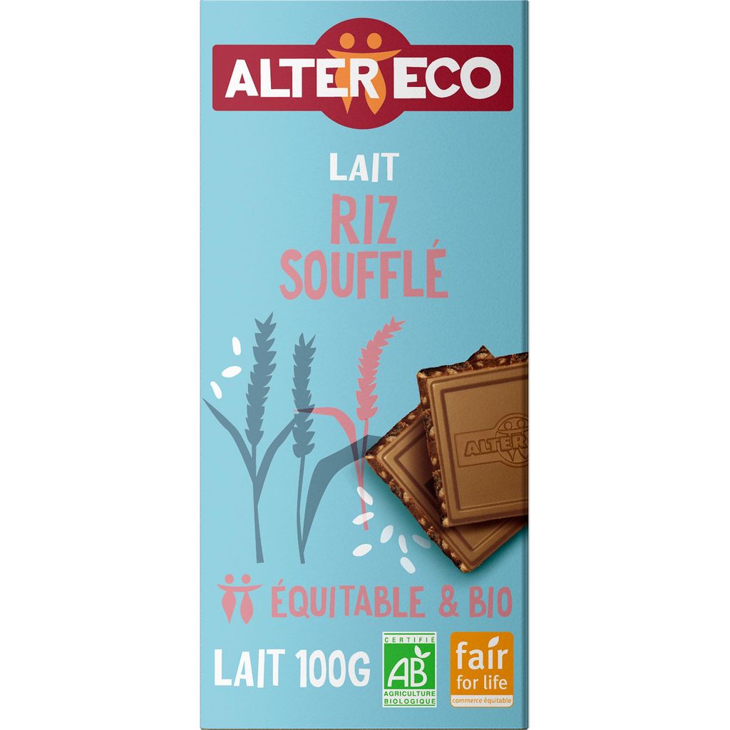 SUCRE DE CANNE*, BEURRE DE CACAO*, POUDRE DE LAIT entier, pâte de cacao* (Equateur, Pérou), riz* soufflé 7% (farine de riz*, sucre de canne*), poudre de lait écrémé. Cacao: 36% minimum. 100% des ingrédients agricoles sont issus de l'agriculture biologique. *Ingrédients issus du commerce équitable contrôlé selon le référentiel Fair for Life : 71,4% des ingrédients. Plus d'informations sur www.fairforlife.org