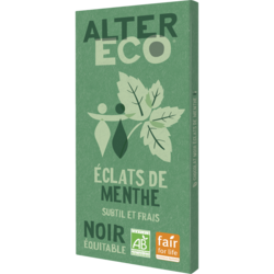 Découvrez le chocolat noir éclats de menthe à 60% de cacao Alter Eco et laissez-vous emporter par sa fraîcheur. Bio et issue du commerce équitable, c'est la tablette de chocolat idéale pour consommer plus responsable du petit déjeuner au goûter.