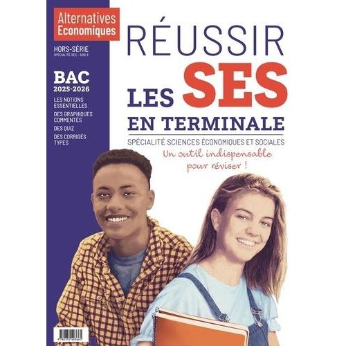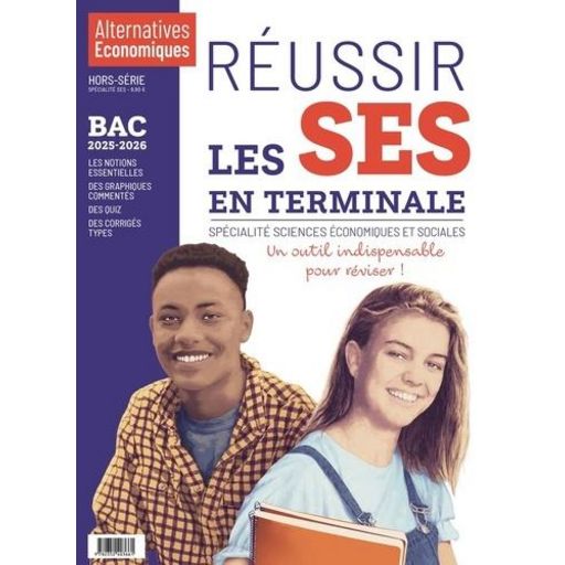 Hors-série - Réussir les SES en Terminale (Bac 2026) Ce hors-série d'Alternatives Economiques, destiné aux élèves de Terminale, est incontournable pour préparer les épreuves de la spécialité Sciences économiques et sociales (SES) du Bac. Il est entièrement rédigé par des enseignants de Sciences économiques et sociales. Un hors-série incontournable pour préparer et réussir les épreuves de la spécialité Sciences économiques et sociales au Bac. Il est entièrement rédigé par des enseignants de Sciences économiques et sociales (SES). On y trouve : la synthèse du programme de Terminale , des chapitres pédagogiques sur chaque thème du cours , les notions essentielles à connaître , des schémas pour comprendre , des études de cas , des graphiques et des cartes commentés , des quiz pour vérifier ses connaissances , des corrigés type , des conseils méthodologiques.