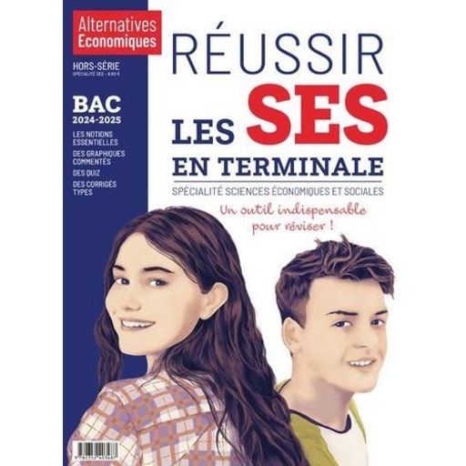 En savoir +Ce hors-série d'Alternatives Economiques, destiné aux élèves de Terminale, est incontournable pour préparer les épreuves de la spécialité Sciences économiques et sociales (SES) du Bac. Il est entièrement rédigé par des enseignants de SES. On y trouve : la synthèse du programme de Terminale , des chapitres pédagogiques sur chaque thème du cours , les notions essentielles à connaître , des schémas pour comprendre , des études de cas , des graphiques et des cartes commentés , des quiz pour vérifier ses connaissances , des corrigés type , des conseils méthodologiques.