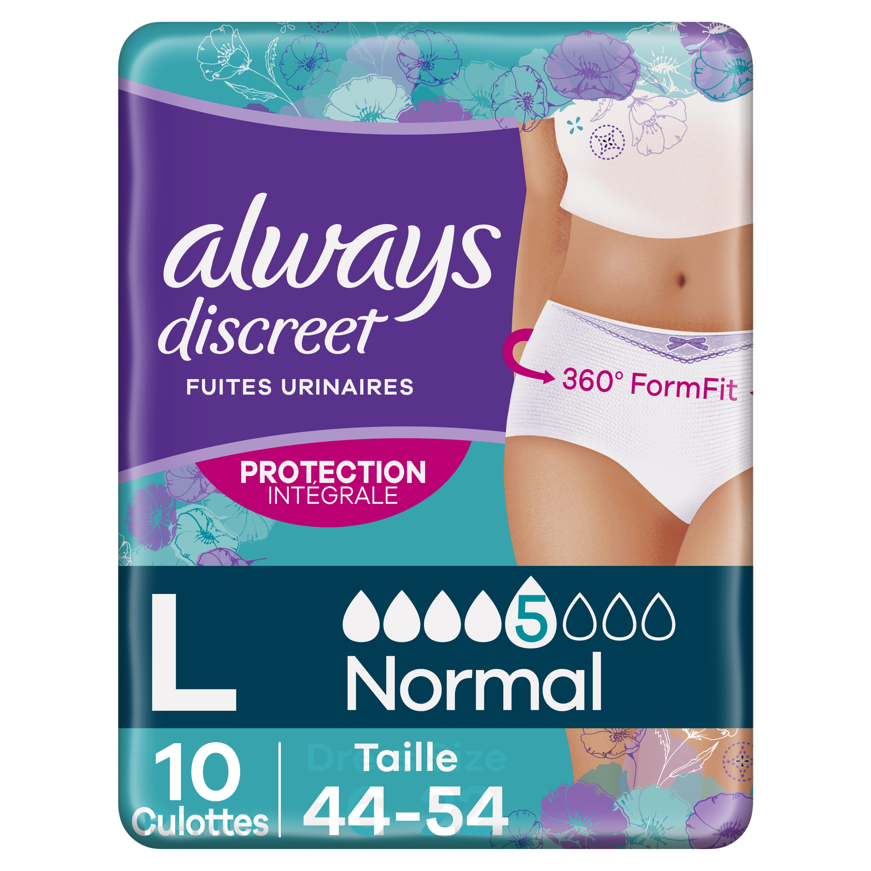 Ne laissez pas les fuites urinaires vous empêcher de vivre votre vie pleinement. Les culottes pour fuites urinaires Always Discreet Normal taille L restent bien en place et vous aident ainsi à vivre votre vie pleinement, même en cas de fuites importantes et inattendues. Les culottes ultra absorbantes sont dotées d’une technologie RapidAbsorb qui aide à absorber les fuites et les odeurs en quelques secondes. Les doubles barrières anti-fuites LeakGuards aident à prévenir les fuites là où elles se produisent le plus. Leur design FormFit à 360° et leur cœur vous offrent un maintien confortable optimal, de sorte que vous puissiez vivre votre vie pleinement en profitant d’une protection qui vous va incroyablement bien. Essayez la culotte Always Discreet Plus si vous avez besoin d’un niveau de protection plus élevé.