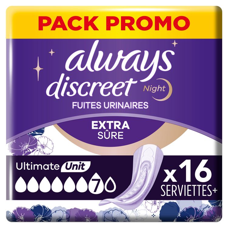 Discreet serviettes extra secure pour fuites urinaires nuit