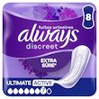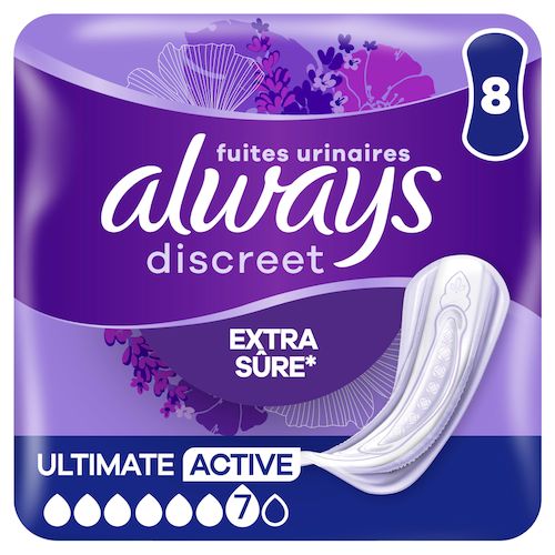Notre serviette avec le niveau d'absorption le plus élevé de la gamme, pour des nuits sereines. Les serviettes pour fuites urinaires Always Discreet Ultimate Jour offrent une protection extra sûre. Conçues pour vous offrir une protection et une absorption supplémentaires afin que vous ne vous inquiétiez plus de vos fuites. Leur structure offre une protection extra sûre avec un cœur ultra fin, vous n'aurez donc pas à faire de compromis sur le confort ou la protection. Les serviettes Always Discreet Ultimate Jour vous offrent une protection optimale en cas de fuites urinaires lorsque vous éternuez ou riez.