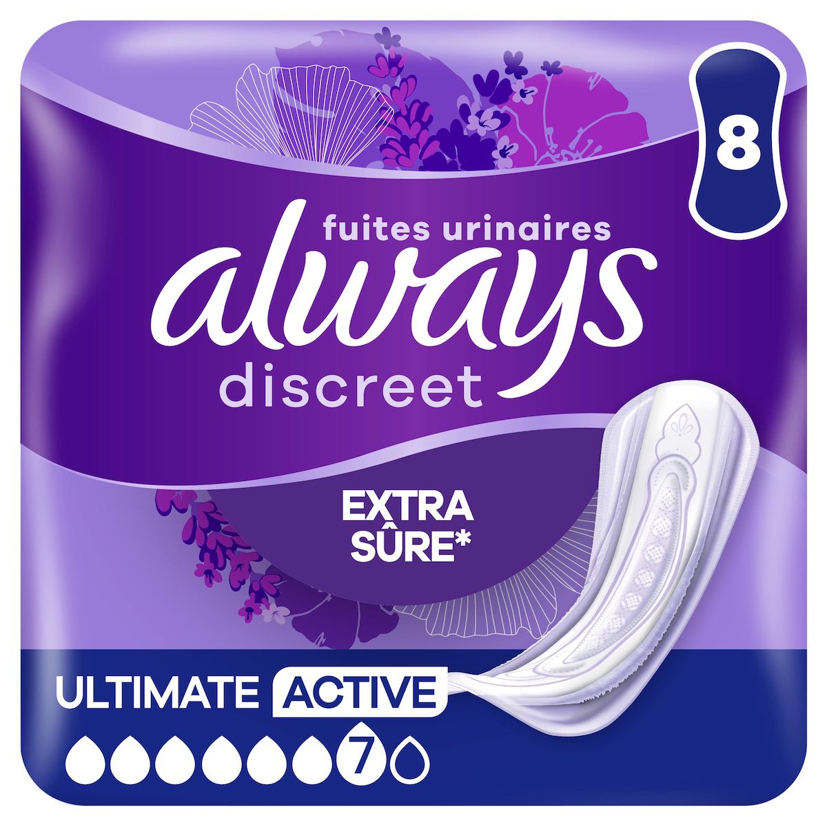 Les serviettes+ pour fuites urinaires Always Discreet sont extra sûres et offrent une protection fiable en toute confiance