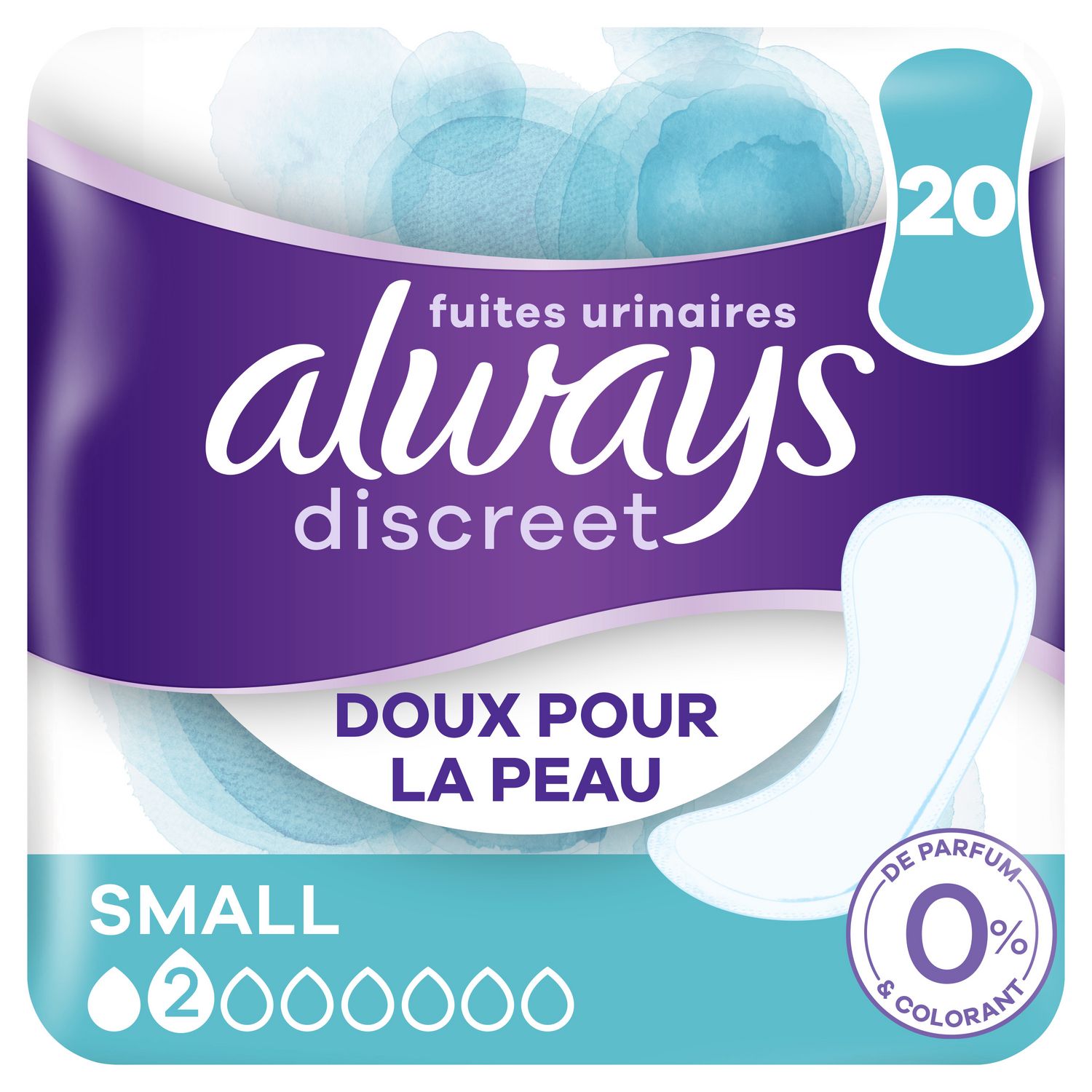 Les serviettes pour fuites urinaires Always Discreet 0% vous offrent la protection Always sans colorant et sans parfum