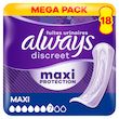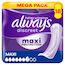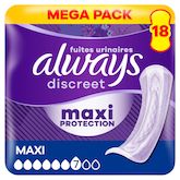 Gamme de Maxi protection, idéale pour des journées sans souci. Les serviettes pour fuites urinaires Always Discreet Maxi vous offrent une sécurité supplémentaire, avec plus de couvrance et d'absorption* pour que vous n'ayez plus à vous inquiéter des fuites. Chaque serviette est conçue pour vous offrir une protection fiable contre les fuites, un contrôle des odeurs, une absorption instantanée, une douceur agréable sur la peau, et un ajustement discret. Leur structure assure une protection optimale avec un cœur ultra-fin,pour que vous n'ayez pas à faire de compromis entre confort et protection. Si un éternuement ou un rire entraîne des fuites urinaires, vous pouvez compter sur la protection discrète et fiable des serviettes Always Discreet. Elles sont également utiles comme serviettes de maternité pour l'incontinence post-partum. *vs Always Discreet Long Plus.