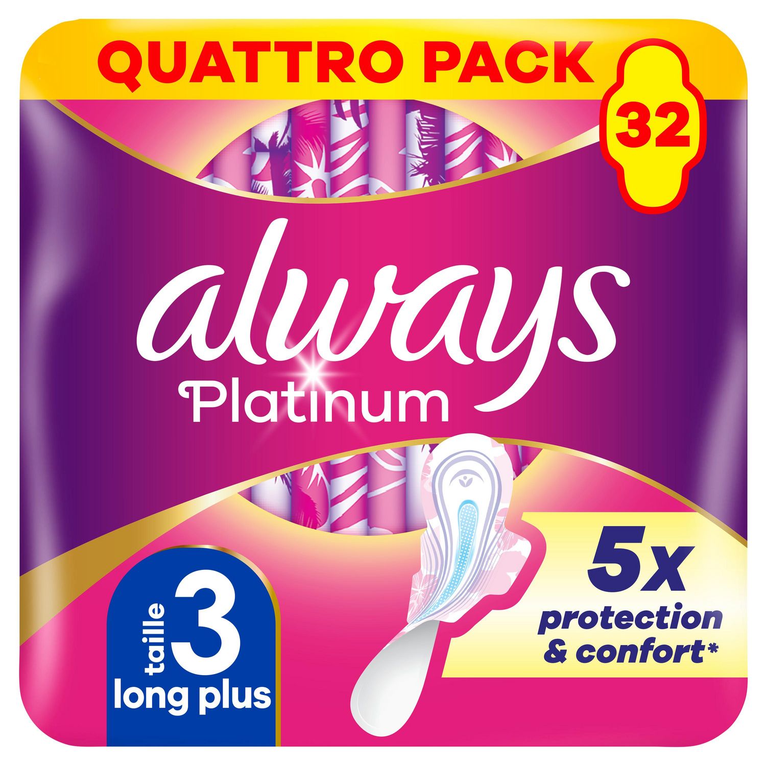 Serviettes avec voile supérieur protecteur ultra-doux pour un confort incroyable et une protection contre les fuites. Les ailettes ComfortLock sont conçues pour s'adapter parfaitement à tous les types de sous-vêtements. Design doux et flexible qui s'adapte à votre corps. Technologie OdourLock avec un parfum agréable qui neutralise les odeurs (ne contient aucun des 26 allergènes listés par l'UE). Les serviettes Always Platinum avec voile supérieur protecteur ultra-doux sont conçues pour éviter les fuites, rester en place et offrir un confort optimal. Avec les serviettes Always Platinum, vous oublierez avoir vos règles.
