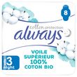 Always Serviettes protection fiable avec un voile supérieur 100% coton biologique