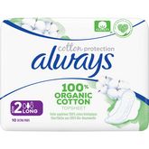 Les serviettes Always Cotton Protection Ultra ont un voile en contact avec la peau 100 % coton biologique. Elles sont sans parfum, sans colorant et sans blanchiment au chlore. Ces serviettes ont été approuvées par les dermatologues de la Skin Health Alliance (Alliance pour la Santé de la Peau) et sont certifiées Cotton Inc. Leur cœur est doté d’un gel ultra absorbant qui transforme le liquide en gel pour empêcher les fuites. Les serviettes Always Cotton Protection Long sont particulièrement adaptées aux flux légers avec une lingerie de taille L, aux flux moyens avec une lingerie de taille M et L, ou bien aux flux abondants avec une lingerie de taille S. Pour en savoir plus sur nos produits, veuillez consulter notre site Web. Always Cotton Protection Ultra Long (Taille 2) Serviettes Avec Ailettes 10X