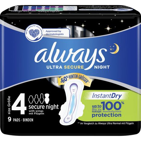 J'utilise les serviettes Always et elles sont confortables et je me sent en sécurité car protège bien. Les ailettes aident à maintenir votre serviette en place, même lorsqu'on bouge beaucoup.