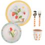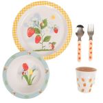 Ce charmant set repas est idéal pour rendre les repas de votre enfant plus agréables et ludiques. Avec des motifs inspirés du printemps tels que des tulipes, des coccinelles et des fraises, il évoque la fraîcheur et la joie de cette saison. Le coffret comprend une grande assiette, une assiette creuse, un gobelet, une cuillère et une fourchette, offrant ainsi tout le nécessaire pour un repas complet. Les couverts en inox garantissent une durabilité et une sécurité optimales.