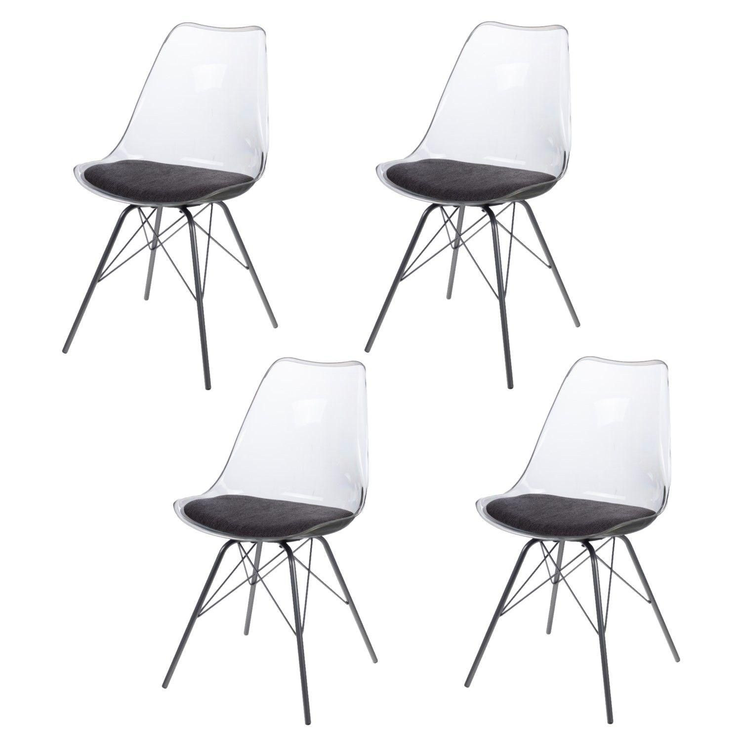 Lot de 4 chaises Diane avec coussin d'assise - Gris