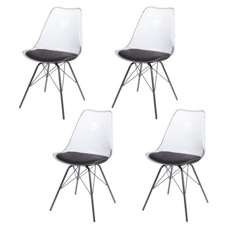 Le lot de 4 chaises Diane est un ensemble élégant et fonctionnel qui apportera une touche contemporaine à votre espace de vie. Dotées d'un effet transparent unique, ces chaises de la collection Diane allient esthétique et confort. Chaque chaise est équipée d'un coussin d'assise en tissu Brego pour u