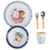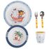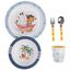 - Comprenant : 1 grande assiette, 1 assiette creuse, 1 gobelet, 1 cuillère et 1 fourchette