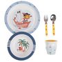 Ce set repas transporte votre enfant dans un monde d'aventure et de mystère avec ses motifs inspirés des pirates et de l'île au trésor. Chaque pièce est ornée de dessins captivants évoquant des bateaux, des trésors enfouis et des pirates intrépides. Le coffret comprend une grande assiette, une assie