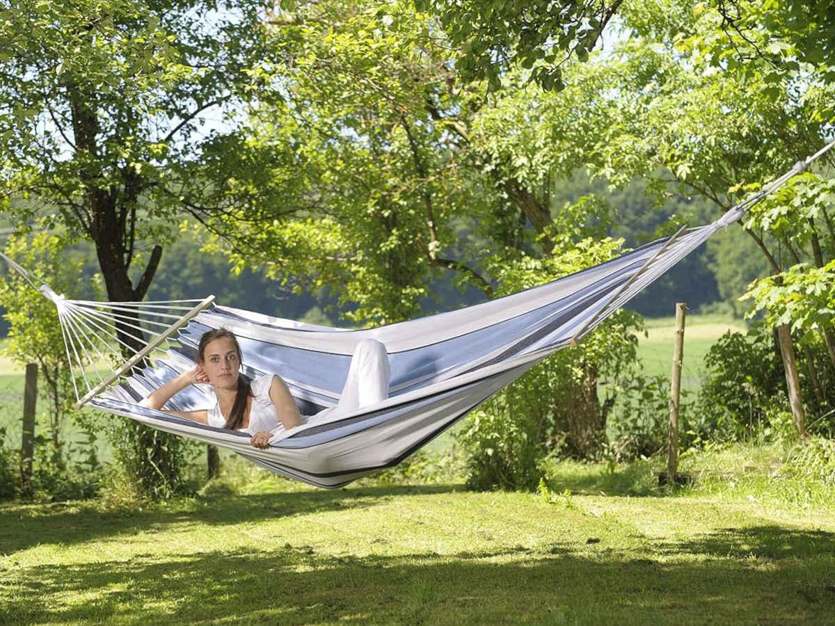 Profitez de la liberté, de l'apaisement et du confort offerts par le hamac Samba Amazonas, un compagnon parfait pour vos moments de détente en plein air.