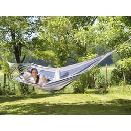 Découvrez le hamac Samba Amazonas, un refuge de relaxation à suspendre où que vous soyez, que ce soit en vacances ou dans votre jardin. Avec son confort douillet, ce hamac offre une expérience de détente incomparable, aussi apaisante qu'un hamac brésilien traditionnel, grâce à son tissu délicat et durable.