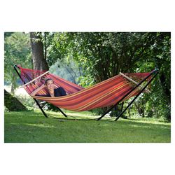 Le hamac avec support métallique BEACH SET de marque AMAZONAS est un appel à la sieste. Grace à ce hamac sur pied, vous allez pouvoir vous détendre dans votre jardin ou sur votre terrasse. Sa structure en acier, recouverte de peinture époxy limite l'effet de l'oxydation et vous offrira longévité et robustesse. Ce hamac avec support 1 personne supporte jusqu'à 100 kg.