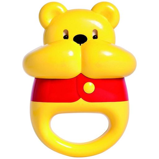 Cet anneau de dentition Ambi Toys a des formes arrondies adaptées aux petites mains et la bouche de Bébé. Une faible pression sur la tête active ses yeux pendant que Ted se cache derrière ses pattes. Lorsqu'on relâche, il saute avec un petit cri et à nouveau ses petits yeux réapparaissent. Un cache-
