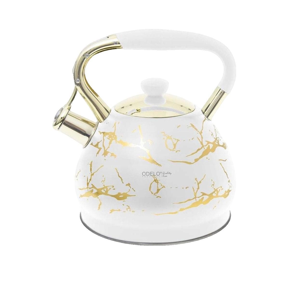 Bouilloire Ambition DARIO en acier inoxydable blanc avec accents dorés