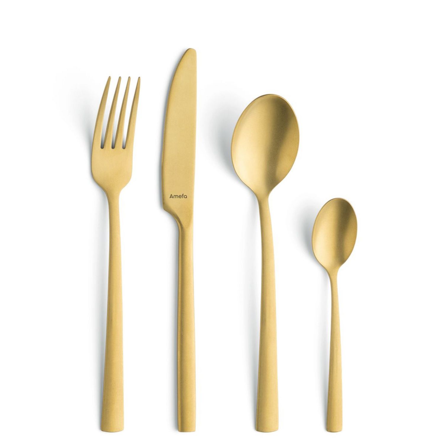 Un design épuré allié à la touche très chic du doré... des couverts qui associent en beauté élégance et modernité. Composée de 4 fourchettes, 4 couteaux, 4 grandes cuillères et 4 cuillères dessert, cette ménagère enchante les tables de fêtes... et s'invite aussi volontiers dans les repas quotidiens ! A noter, ces couverts sont parfaitement adaptés au lave-vaisselle.