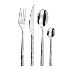 Amefa 145000AF11C40 Ménagère 24 pièces de la collection Cali par Amefa 145000AF11C40. Joli couvert, simple et moderne, réhaussé d'une gravure d'écorce sur les 2 côtés du manche. Le couteau lame steak est parfait pour découper avec précision les viandes les plus coriaces. Amefa est l'un des principaux acteurs du secteur international de la coutellerie. Depuis 1931, Amefa applique les normes de qualité les plus strictes pour garantir la durabilité de ses couverts, couteaux et accessoires de table. Une gamme de couverts simples et modernes, réhaussés d'une gravure d'écorce sur les 2 côtés du manche. Le couteau avec sa lame spéciale steak est parfaite pour découper avec précision et efficacité. Comprend 6 fourchettes, 6 couteaux monobloc, 6 cuillères de table et 6 cuillères à café.