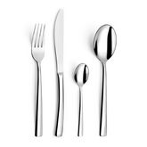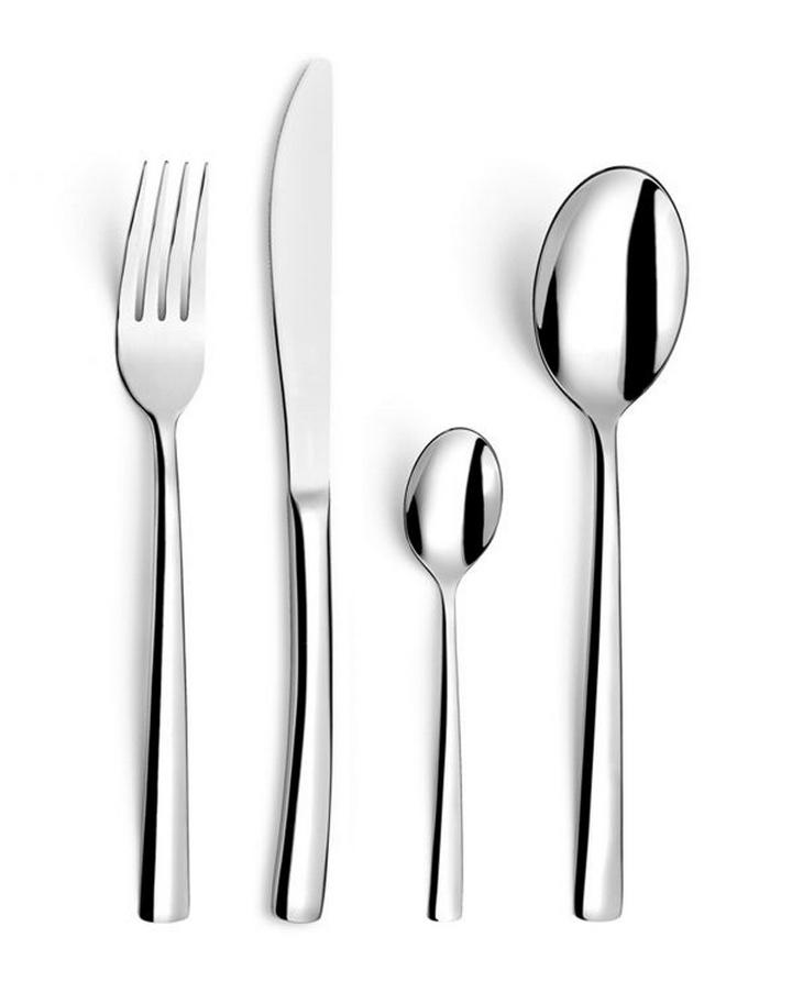 Amefa 462056 Ménagère 24 pièces Havane Amefa 462056 comprenant 6 cuillères à café, 6 cuillères de table, 6 fourchettes de table et 6 couteaux de table. En acier inoxydable 18/10 avec finition polie miroir. Modèle cossu par sa forme en arc tendu donne à ce design des plus modernes une véritable touche de légèreté.
