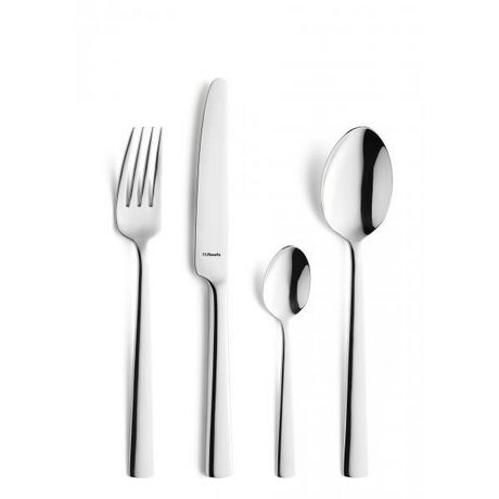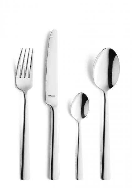 Amefa 192300AF04F91 - 12 fourchettes de tables, 12 couteaux de tables, 12 cuillères de table, 12 cuillères à café, 1 service à salade, écrin beigemonobloc en inox 18/10Lame couteau en inox 13/cPolissage miroirPourtour adouci et lustréEmoutureLaminéTrempé, dureté, flexibilitéSpécial lave-vaisselleFo