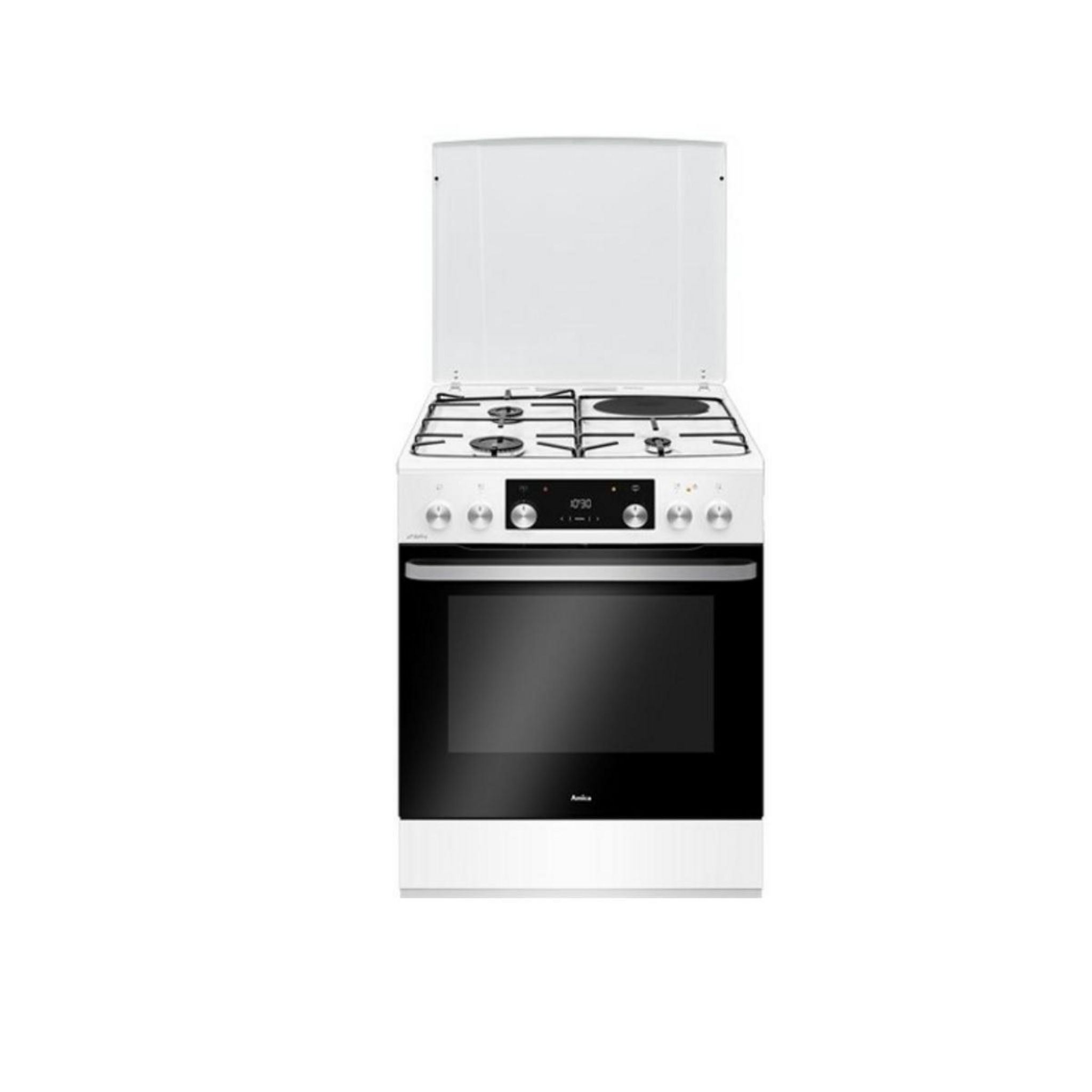 Amica ACM7035RB Cuisinière mixte Amica ACM7035RB composée d'un four électrique 11 fonctions dont Vapeur avec une plaque de cuisson dotée d'1 plaque électrique et 3 brûleurs dont 1 rapide 3 kW.