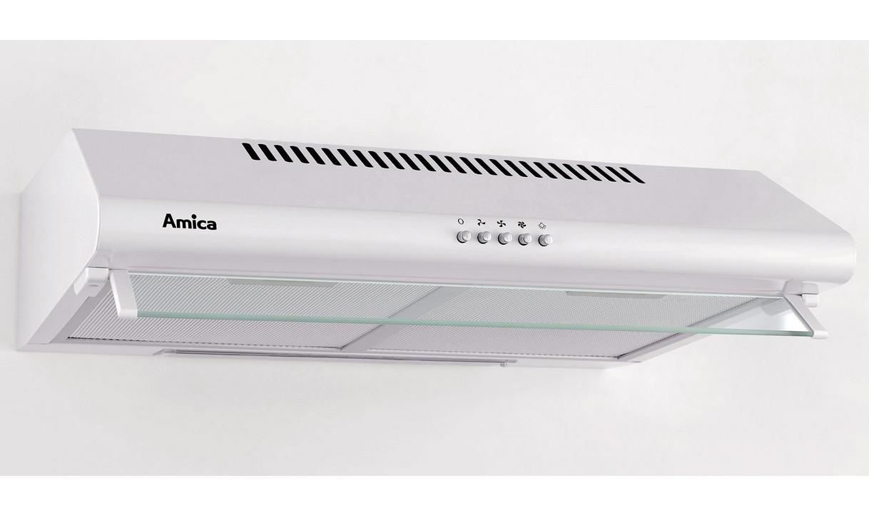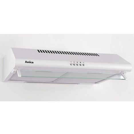 En savoir +Amica AH1416 Hotte visière Amica AH1416 avec efficacite.Des odeurs de cuisine ? C'est du passé , les ventilateurs des hottes Amica sont très efficaces, ils éliminent complètement les odeurs.Niveau sonoreLes hottes présentent des normes standard ou plus performantes suivant les modèles.Differentes vitessesIl est possible d'ajuster la puissance de la hotte selon le type de cuisson.Eclairage LEDL'éclairage LED permet de donner une ambiance à votre cuisine. Il est moins gourmand en énergie qu'un éclairage altique.Filtre à charbon : 2L'air est extrait de façon propre et efficace grâce aux filtres à charbon intégrés dans la hotte.